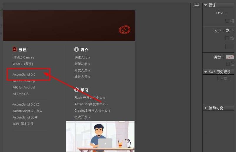 1、打开Animate软件,新建Actionscript3.0文档。