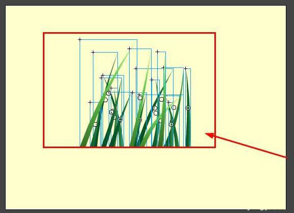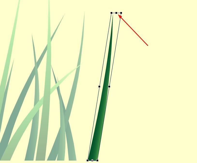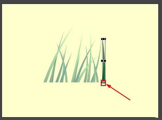 3、转换为图形元件后,双击进入编辑,用任意变形工具选择草叶后调整变形点到下方