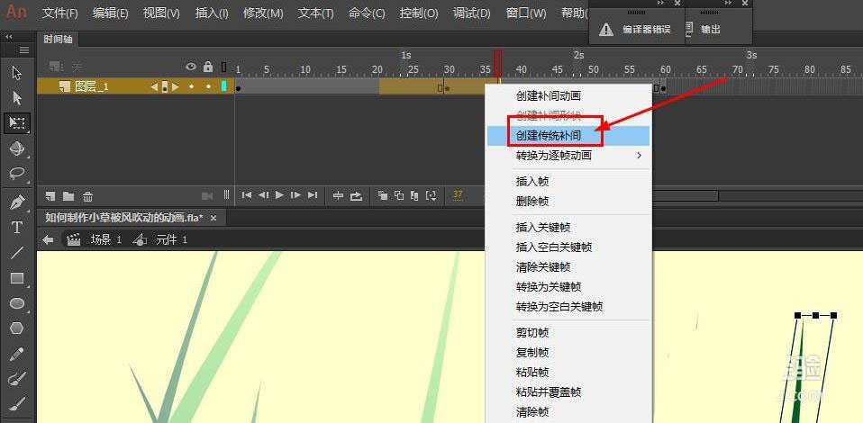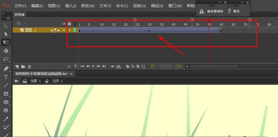 使用动作补间动画,可以制作各种小动画,比如今天我们要讲的小草被风吹动的动画,具体该怎么制作呢?下面我们就来看看详细的教程。