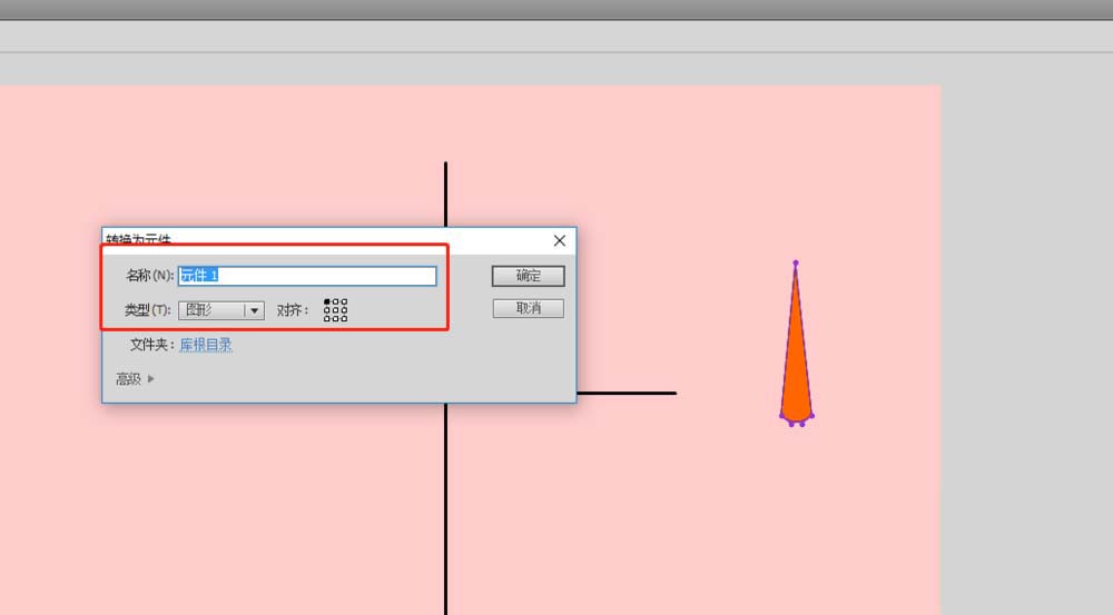 5、拖动鼠标框选选中箭头图形,按F8快捷键执行转换为元件命令,将这个箭头变成一个图形元件。