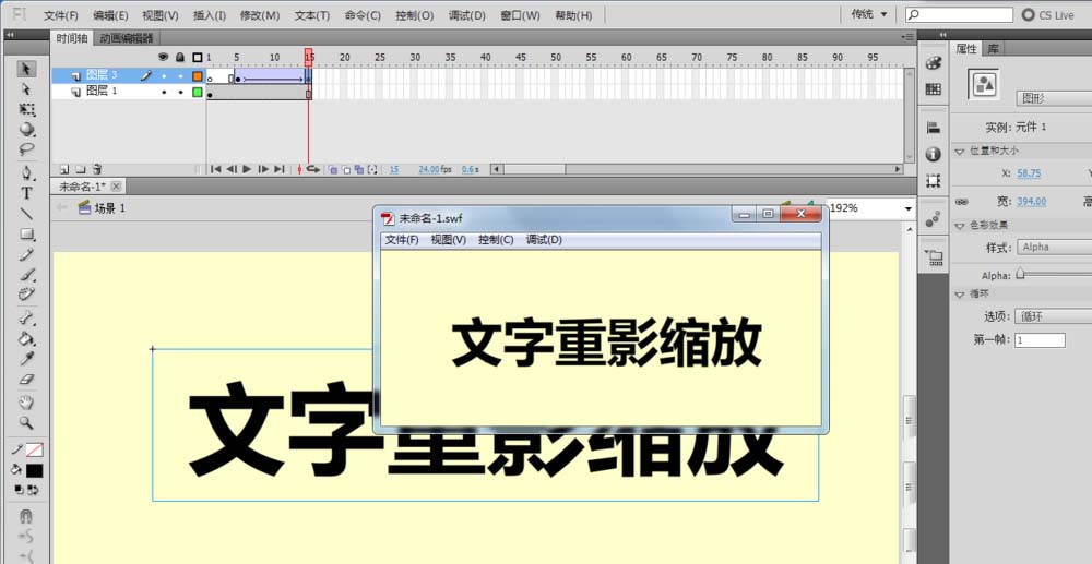 以上就是flash制作文字重影缩放效果的教程,希望大家喜欢,请继续关注武林网。