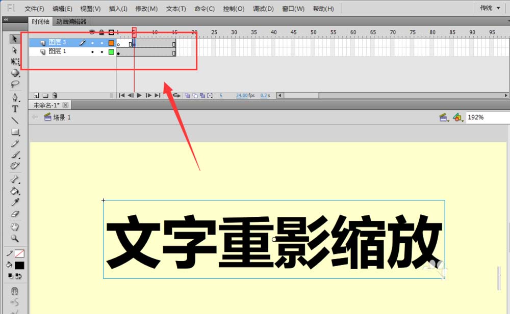 flash中想要制作一个文字重影的缩放变化效果,该怎么制作这个动态效果呢?下面我们就来看看详细的教程。