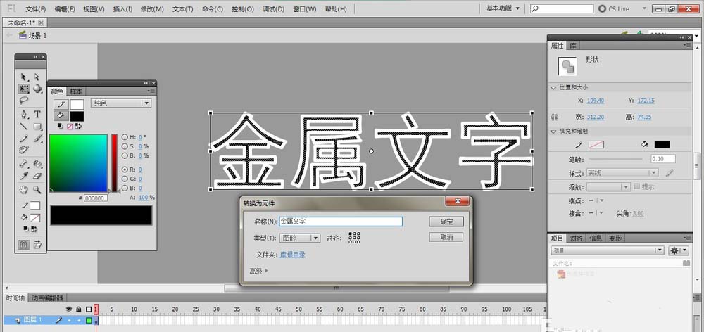 3、将黑色文字部分选中并转化为名为“金属文字”的图形元件。