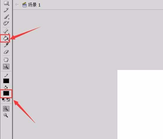7、绘制好把手之后再在工具箱内找到颜料桶工具,并将颜色设置为红色,如图所示: