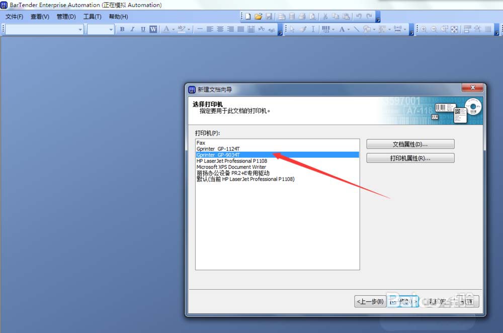 3、在“打印机”选择栏里选择你的标签打印机,并点击下一步,进入“选择卷”页面。