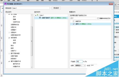 5、选中”五角星“,添加鼠标单击事件用例,设置动画效果,如下图所示: