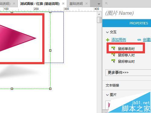 6、以上步骤完成后,开始编辑交互用例。双击红旗图片,出现如下图所示的交互用例,找到:鼠标单击时,并双击出现用例编辑面板。