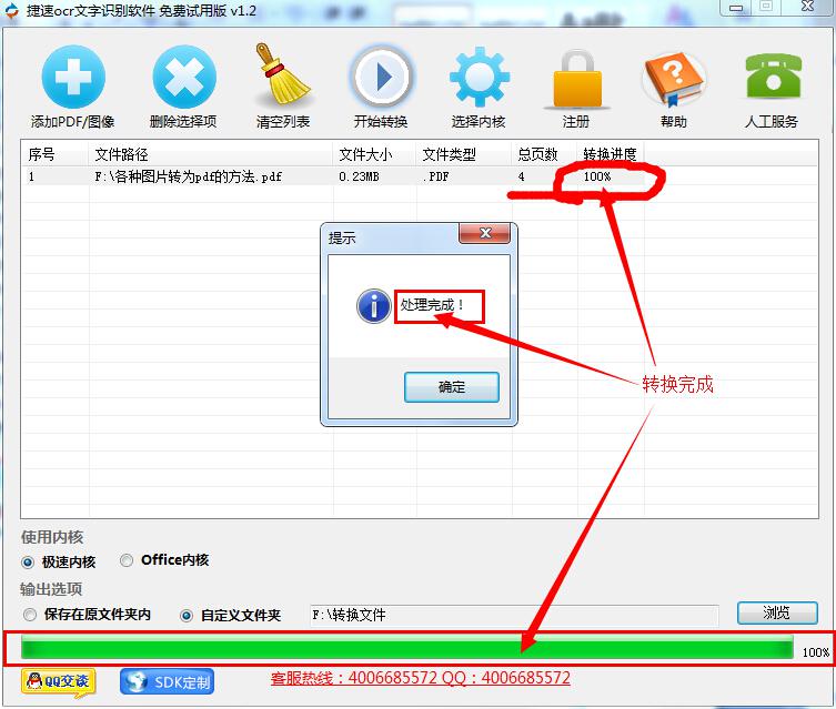 第三步:软件正中上方有个“开始转换”按钮,单击此按钮转换工作就开始了,用户等待片刻文档即可转换成功。(点击“开始转换”按钮时,会出现提示注册的窗口,用户可以根据自己需求选择是否注册)