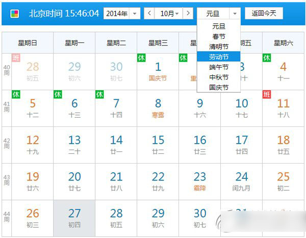 人生日历的web版分为两个主要部分,第一部分是主日历部分。在主日历上,童鞋们可以查看日历,阳历和农历对应显示,清晰明了。点击主日历上方的下拉按钮,可查看一年的法定节假日放假调休的安排,让自己随时都能根据安排来计划自己的假日。