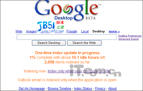 在“Desktop Preferences(偏好设置)”中,点击“Gmail and Search Across Computers”链接,在这里可以设置是否搜索GMAIL和远程桌面搜索。