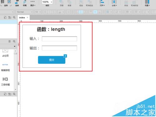 给“提交”按钮添加交互用例“鼠标点击时”,设置文本为值,并按照图示设置局部变量,在插入函数中插入:[[LVAR1.length]],然后F5,预览,并输入测试字符,如下图