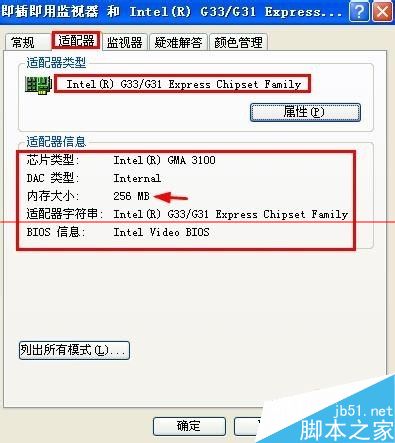 3、然后出现的窗口中我们点击适配器就可以看到自己显卡的型号以及显存。