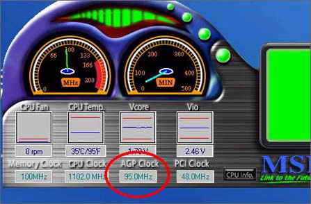 一次偶然的机会,笔者看到了MSI 6119的PDF技术文件,里面介绍了在MSI 6119的主板AGP插槽上有一个跳线,能够设置在100外频下,AGP总线速度是66MHZ还是100MHZ。