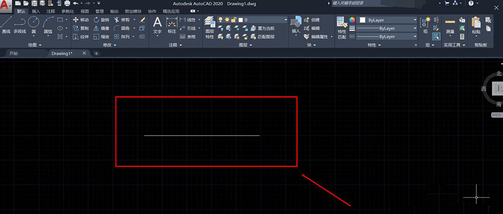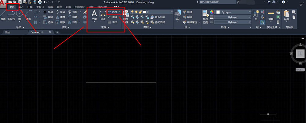 5、选择“默认”菜单栏下的“注释”中的“线性”图标