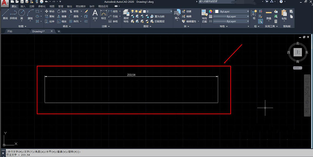 6、锁定直线的起点,再锁定直线的终点,向上方拖拉,线性注释表示如下图:
