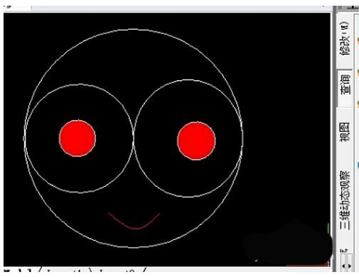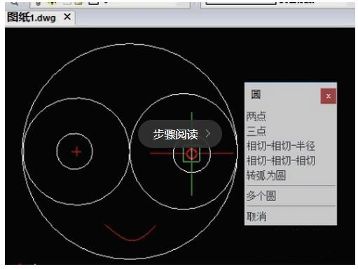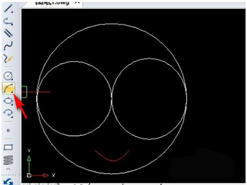 3、同样点击软件左侧绘图选项里的三点定弧图标,在大圆里,两个小圆的下方,我们通过三个点绘制一条弧线作为笑脸里的嘴巴。