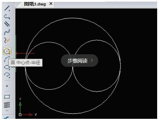 2、在CAD编辑器建筑版里,同样点击软件左侧绘图选项里的圆形图标,以绘制的大圆的半径作为小圆的直径,在大圆里绘制两个同等大小的小圆。