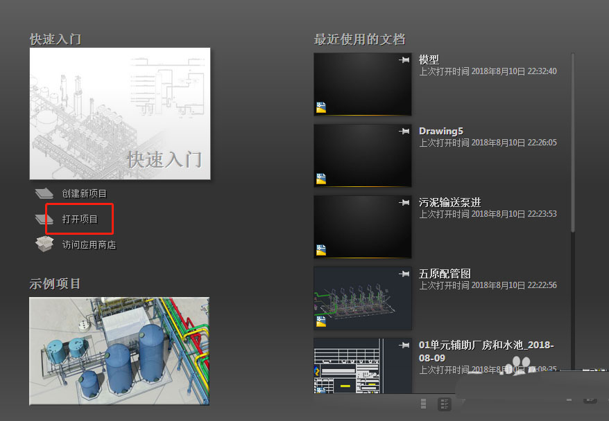 1、打开AutoCAD Plant 3D,打开默认项目,也可以自己新建一个项目!在左边的项目管理器的plant3D模型下面右键新建一个图形文件。