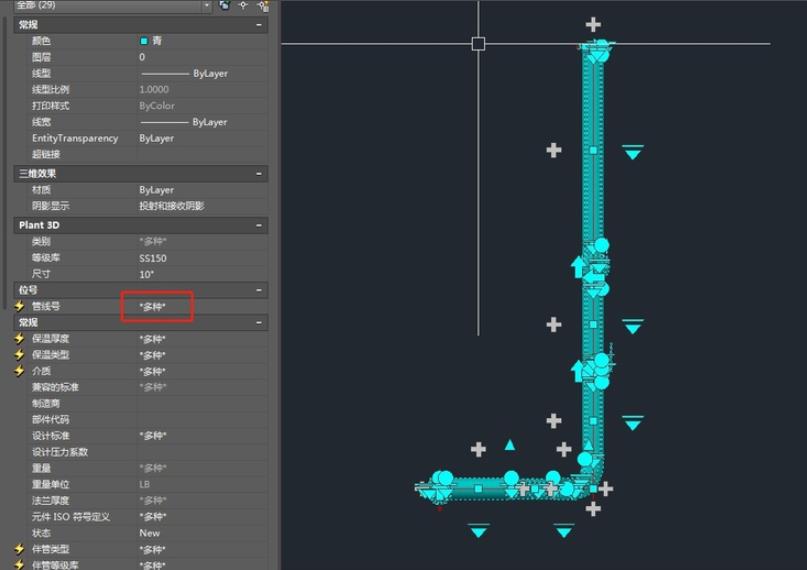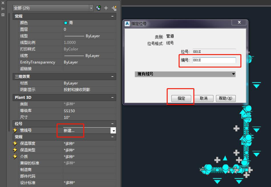 4、我们选中画的管道,按ctrl+1快捷键调出特性面板,给管线加上管线号,比如我们给命名为:001X。
