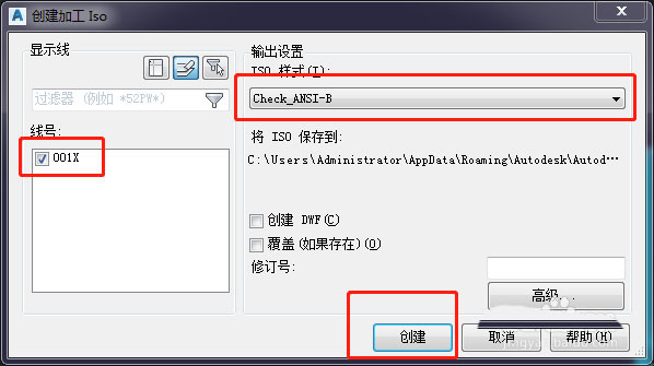 6、选择我们画的图形的管线号,指定ISO样式,点创建。