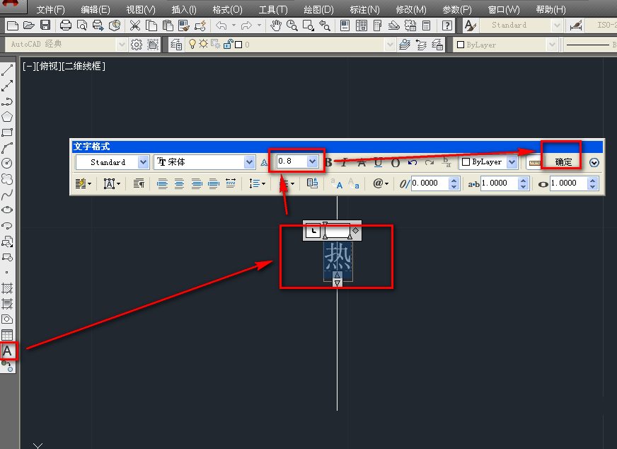 2、使用文字工具,在辅助线的位置输入热字,调整大小,如下图。