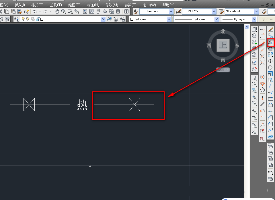 6、使用镜像工具,将辅助线左侧的图形镜像到右侧,如下图。
