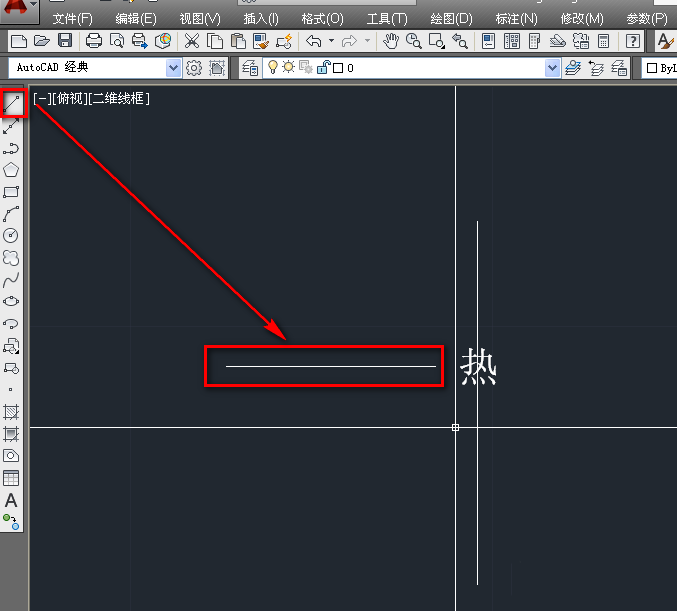 3、使用直线工具,在辅助线的左侧绘制一条横线,如下图。