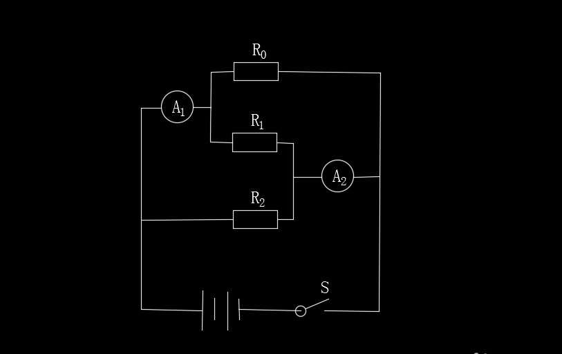 8、我们再按照以上的方法,再在电路图中画出其他的电阻及电流表符号,如图所示:
