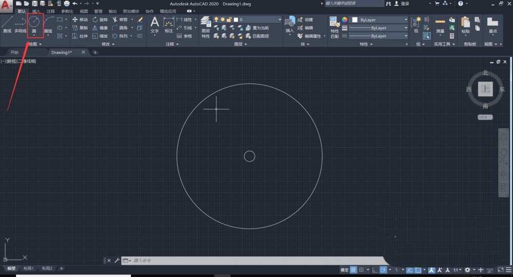 3、在大圆和小圆之间绘制一个不大不小的圆,作为辅助