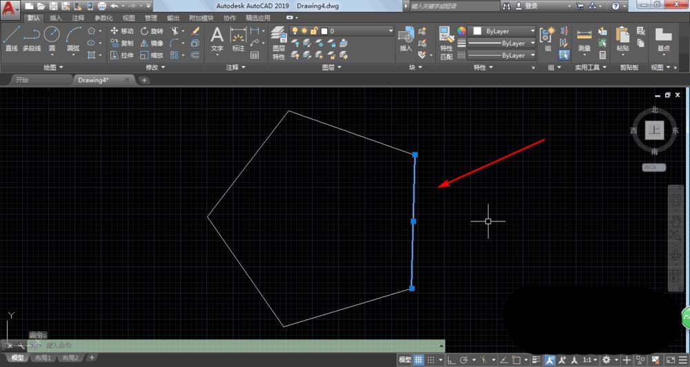 5、这个时候随便点击五角形,然后会发现只会选中一条边,我们就可以进行移动了。