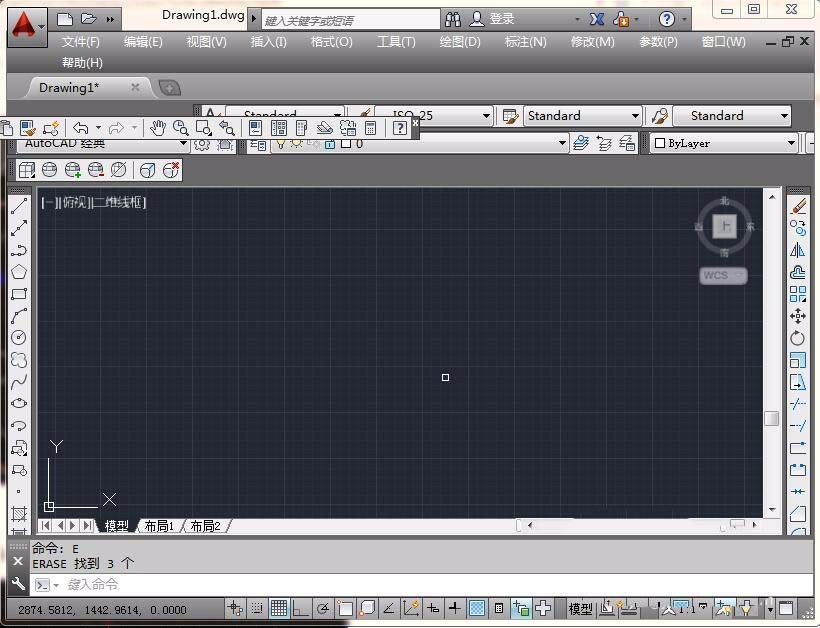 1、首先我们将CAD打开,进入到绘图界面,如图所示。