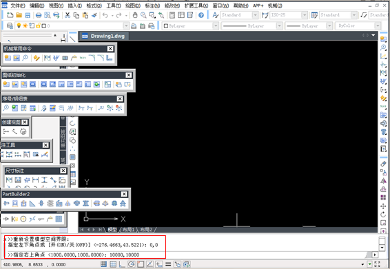 3、设置绘图界限:格式-图形界限-左下角点(0,0),右上角点(10000,10000)。