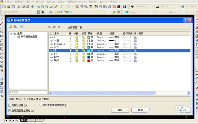 6、将偏移后的墙线修改到墙的图层中:选中偏移后的墙线,再点图层处的墙层,把图层换到墙层。