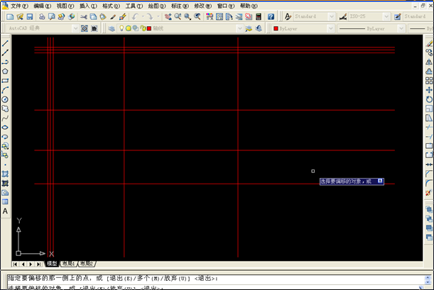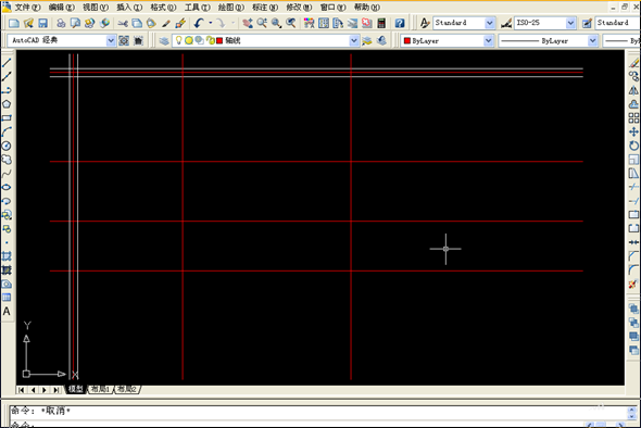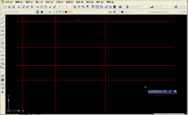 4、画定位轴线,点选绘图--直线,先画一条水平线,一条垂直线,其他用复制与偏移命令(修改里)输入数据获得。