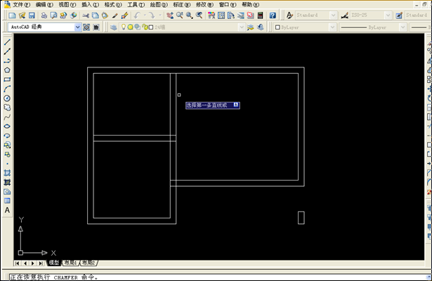 8、利用修剪、倒角命令完成大致的墙体修剪工作,留下必要的墙体线。