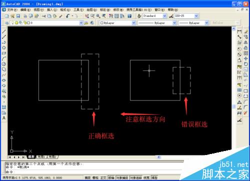 注意,需要将与被拉伸边相接的边也要选中,从右至左框选碰到及包含都会被选中,从左至右只有包含才会被选中。