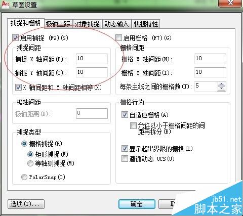 3、将启用捕捉选项不选择,最好将下面间距调小,确定就可以了.如图