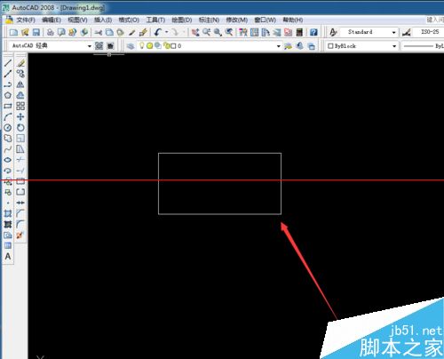 5、如下图看到了红色的矩形。以上操作每一次都是要设置才有颜色的,如果要画出都有颜色怎么操作?下一步有步骤。