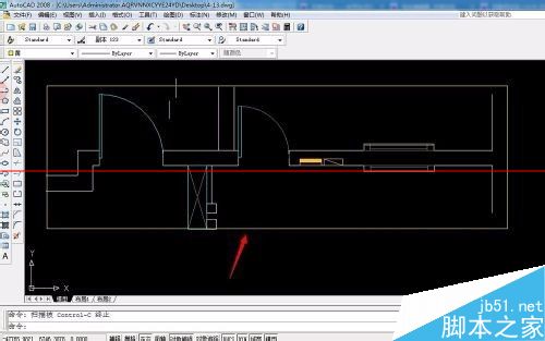 7、如下图可以看到了这里画出门宽度825、旁边跟着尺寸来进行来就可以了,要灵活一点,多一点少一点都是可以的。