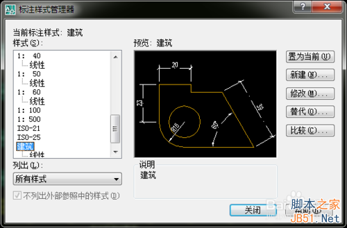 在某些特定情况下,CAD绘图时并不需要按原比例标注,而是要按照放大或缩小后的比例进行标注,这个时候如果把标注分解后再单个编辑,在图形较复杂的情况下是特别麻烦的,所以在这里介绍一下更改标注比例的方法,希望对大家有帮助