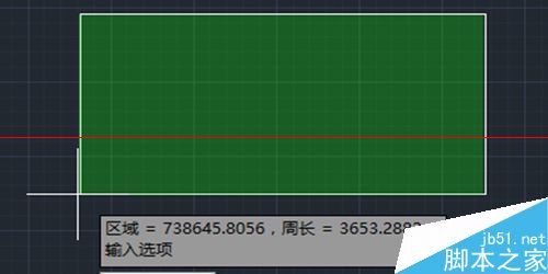 然后依次选择矩形的四个端点,为了避免出错,建议按照由左至右、由上到下的顺序选择端点,这样整个矩形就会全部变颜色,回车确认后,就会发现下方出现数据框,显示面积、周长。
