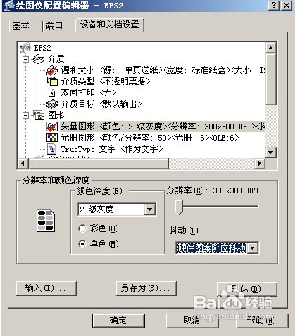 7、矢量图形"对话框, 选单色就是黑白色的,这里还可以设置 分辨率 这里默认 300DPI,抖动不用管,默认就好.