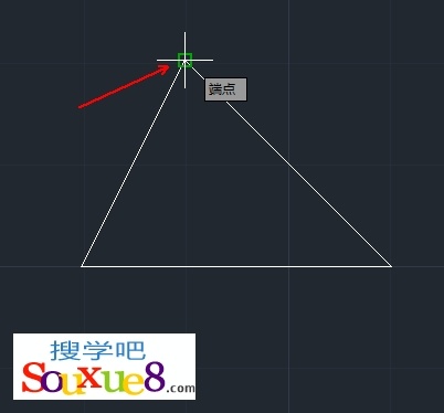 在此提示下单击选择图形对象斜边的上端点,如图所示。