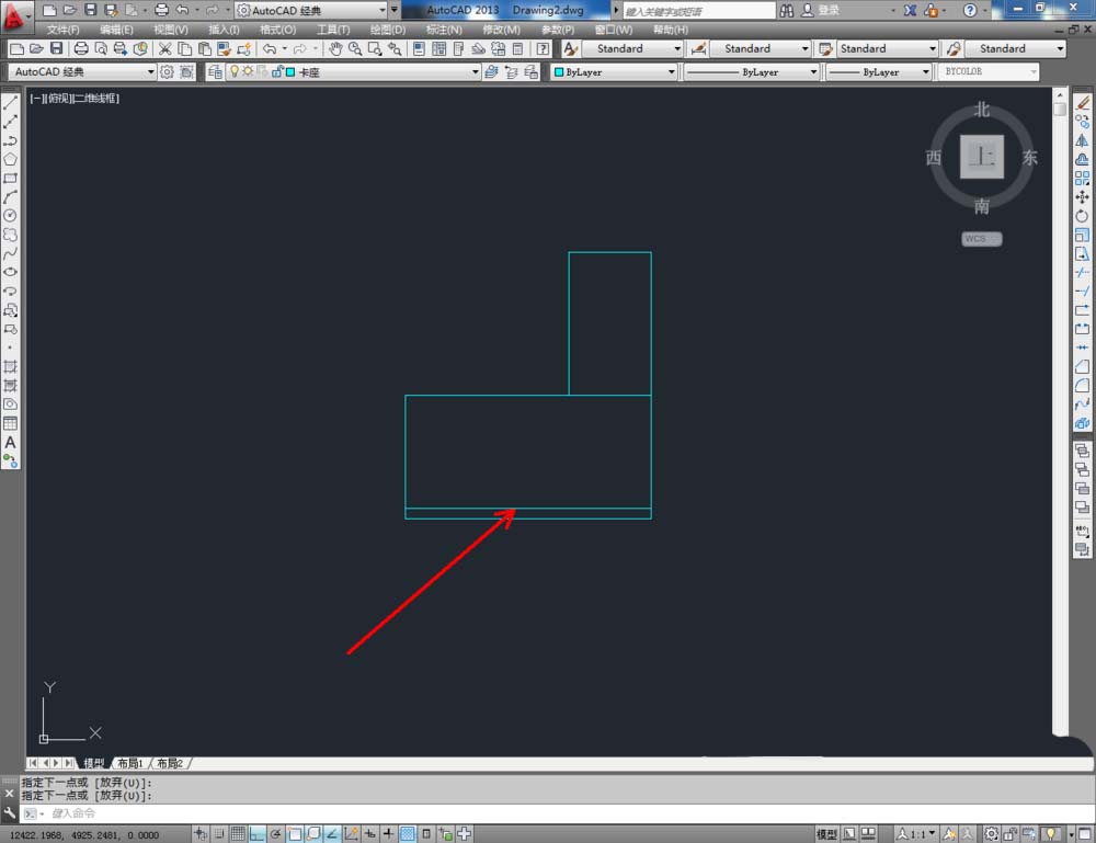 3、点击【直线工具】,按图示绘制出一条屏风位置的线段。完成后,框选整个图案,在命令栏输入:b并按下空格键,将图案转换为块并将块命名为:卡座(如图所示);