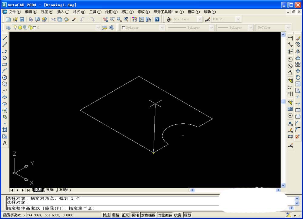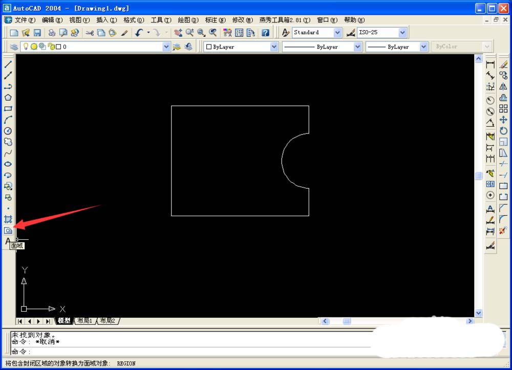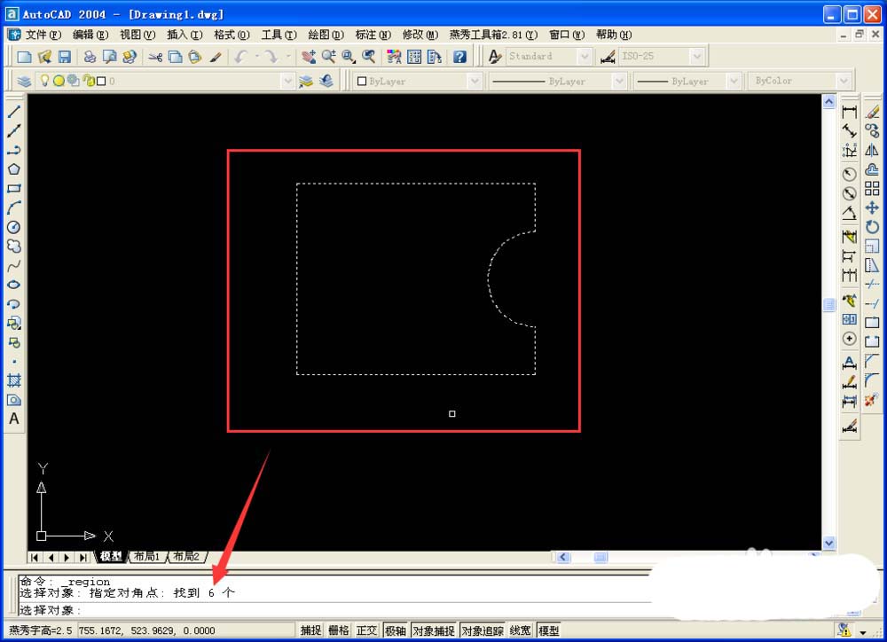 2、框选绘制好的图形——按空格,这样便创建好了面域,在cad中使用直线和圆弧等命令创建的图形一般无法拉伸,需要创建成面域,注:多段线、矩形、圆等创建的封闭图形可以拉伸。