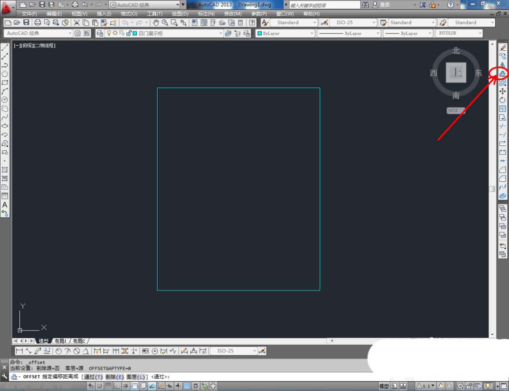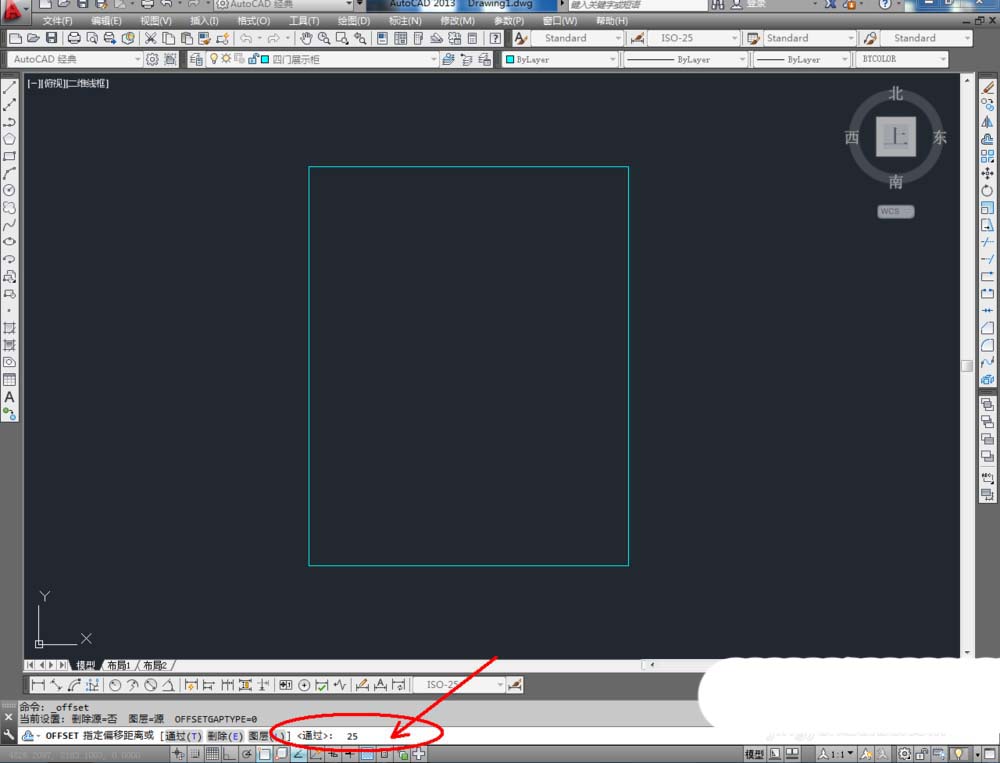 3、点击右边工具栏中的【偏移】,在命令栏中输入: 25,选中图案侧边和顶边,依次对侧边和顶边进行向内偏移。在命令栏中输入:80,选中底边,将底边进行向上偏移(如图所示);