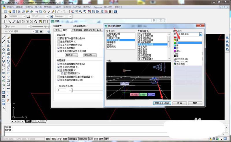 CAD三维平行投影设计工具栏怎么设置提示颜色?
