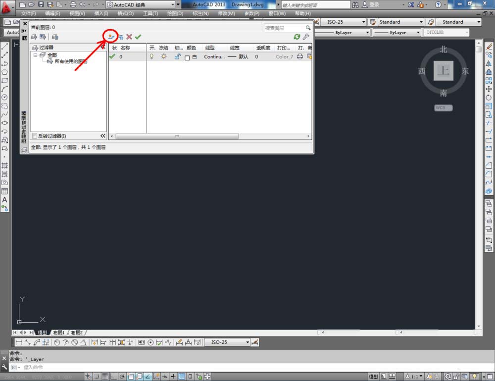 1、打开AutoCAD 2013软件,点击【图层特性管理器】,点击【新建图层】,将图层命名为:自定义图案。点击色块,按图示设置一个图层颜色,完成自定义图案图层的设置(如图所示);