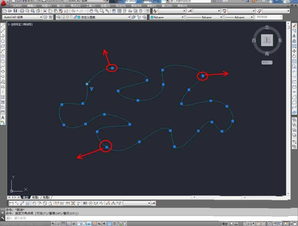 2、直线自定义图案的制作。点击【多段线工具】按图示在作图区域绘制出一个多边图案。选中图案,通过对图案上的节点进行调整,完成直线自定义图案的绘制(如图所示);