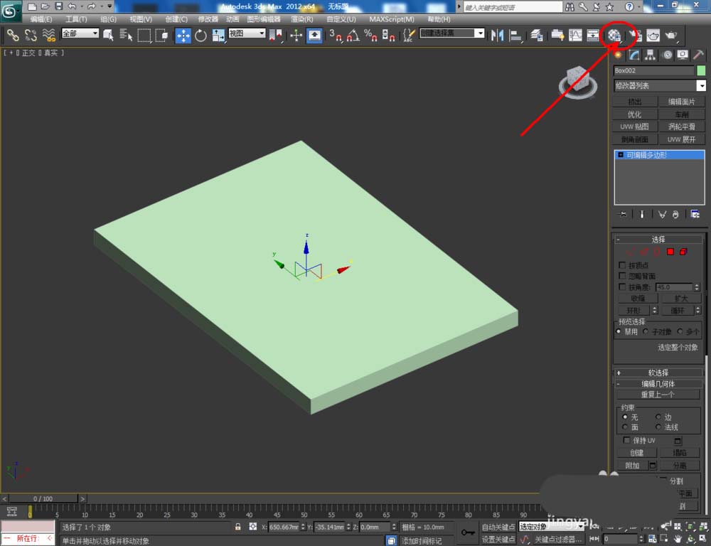 1、打开3Dmax2012软件,点击【创建】-【几何体】-【长方体】,在作图区域绘制一个长方体模型并按图示设置好长方体的各个参数。完成后,点击鼠标右键-【转换为可编辑多边形】;